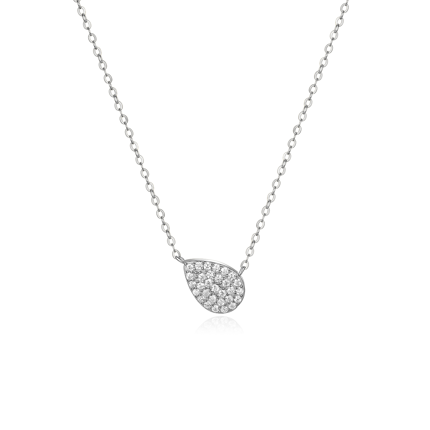 925 Silver Pave Diamond Leaf Pendant Necklace-MMN309