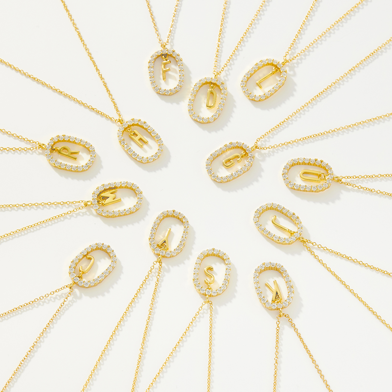 925 Silver Pave Initial Pendant Necklace-MMN279