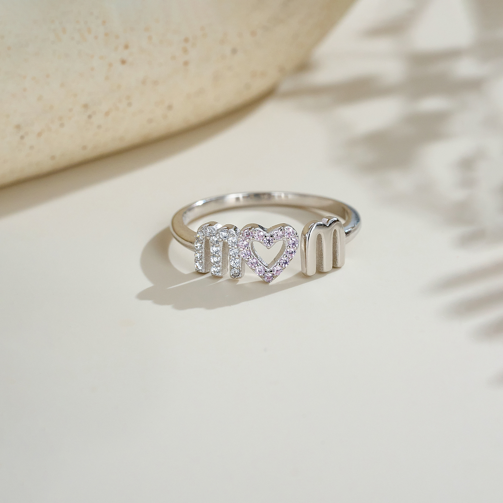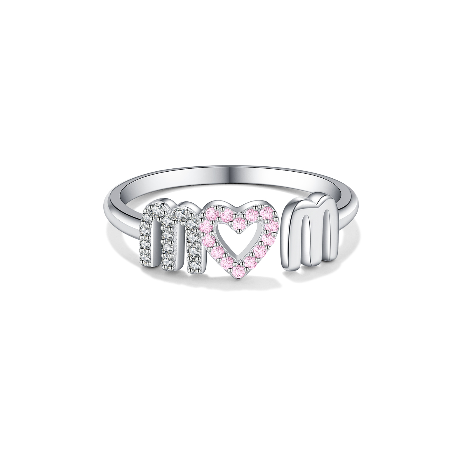 925 Silver Pink Crystal Heart Ring-MMR409