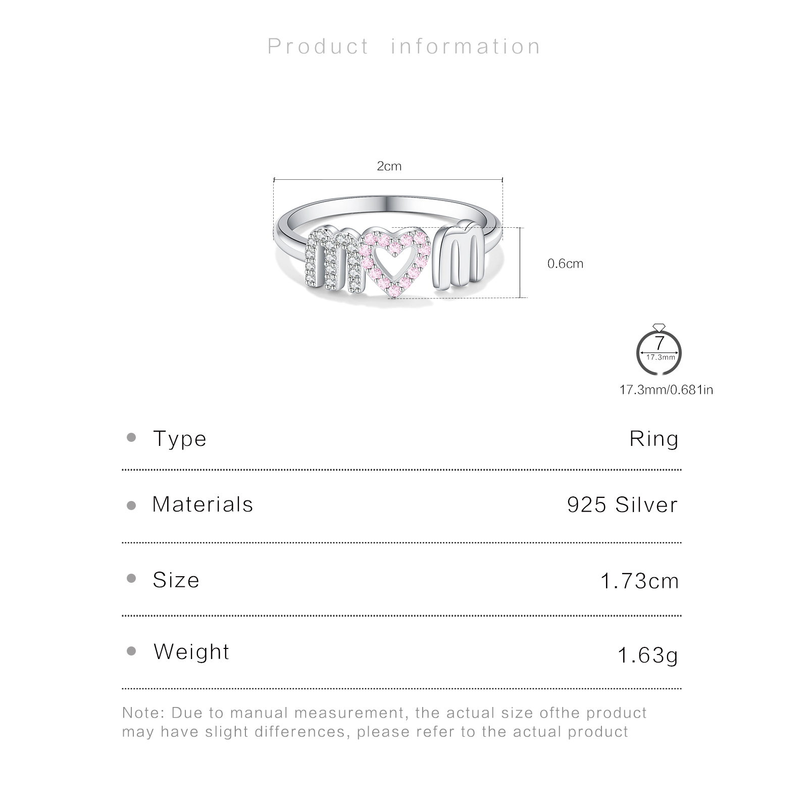Be the first to review “925 Silver Pink Crystal Heart Ring-MMR409”