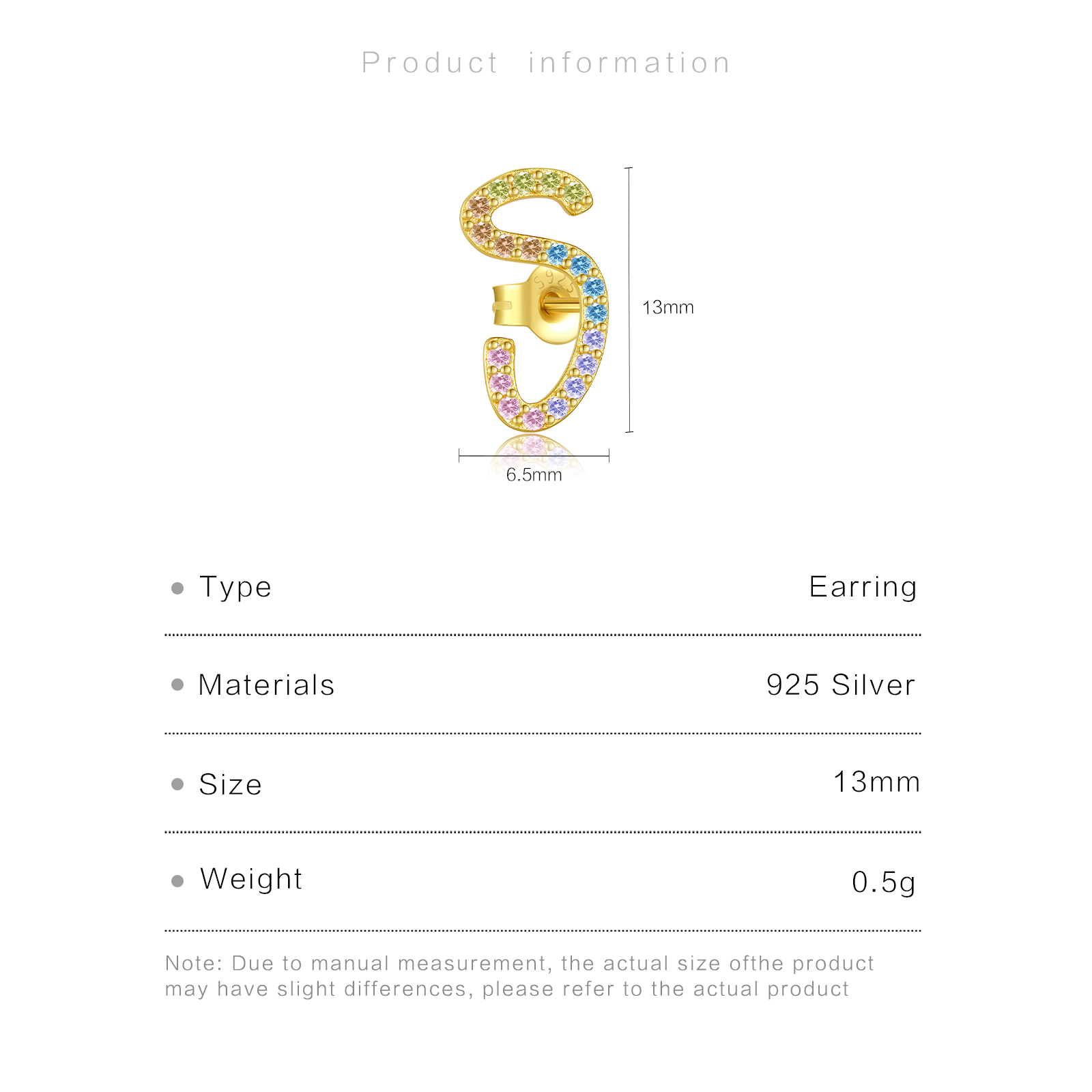 Be the first to review “925 Silver-(Round Colorful Zircon Style)Plated Gold S-Shaped Earrings -MME1040”
