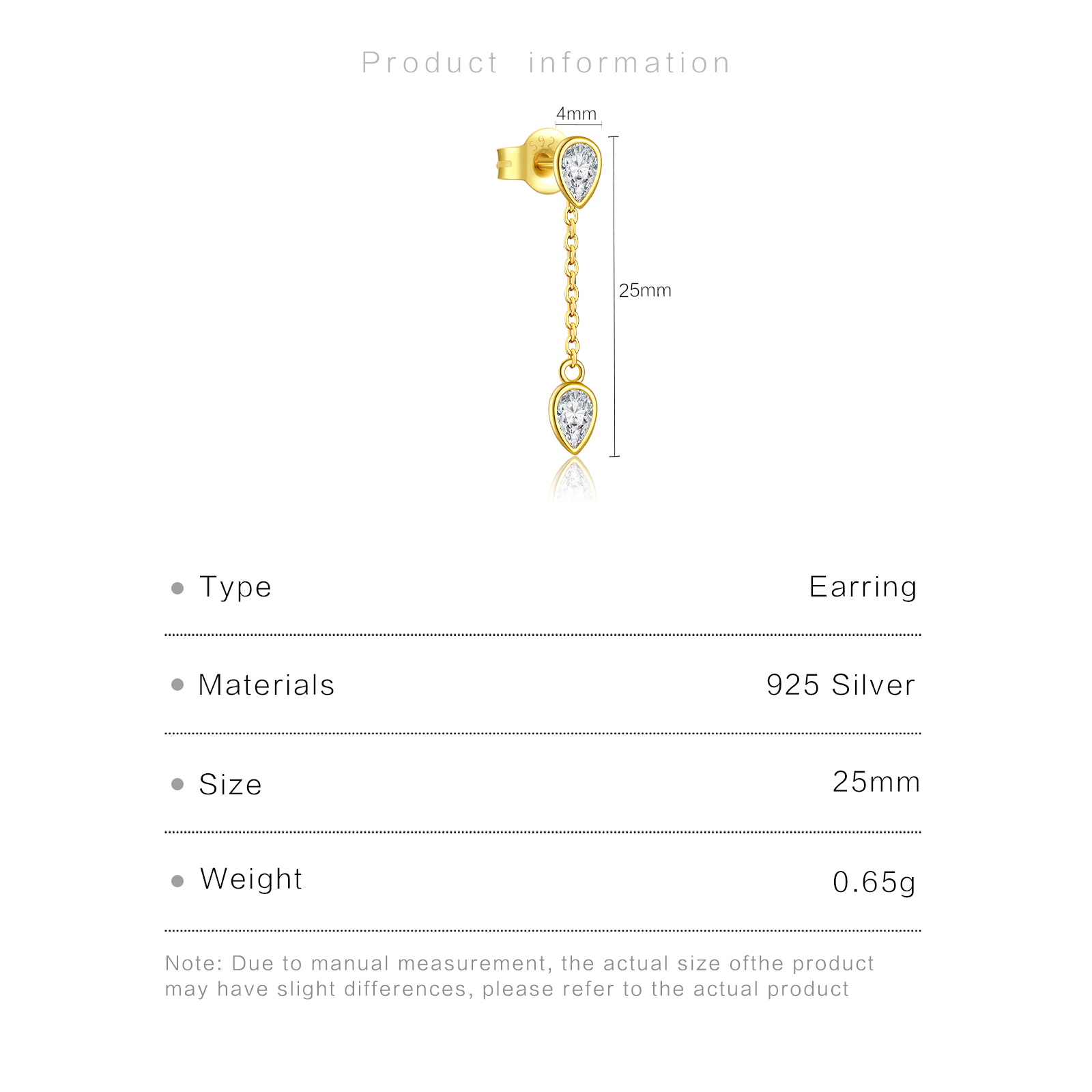 Be the first to review “925 Silver-Plated Gold Teardrop CZ Chain Eardrop -MME1037”