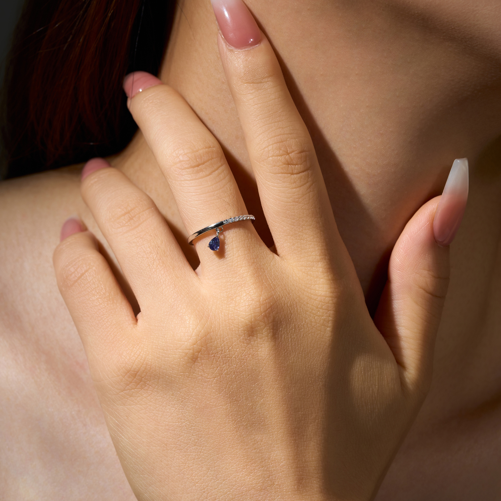 925 Silver Sapphire Droplet Half-Eternity Ring-MMR373