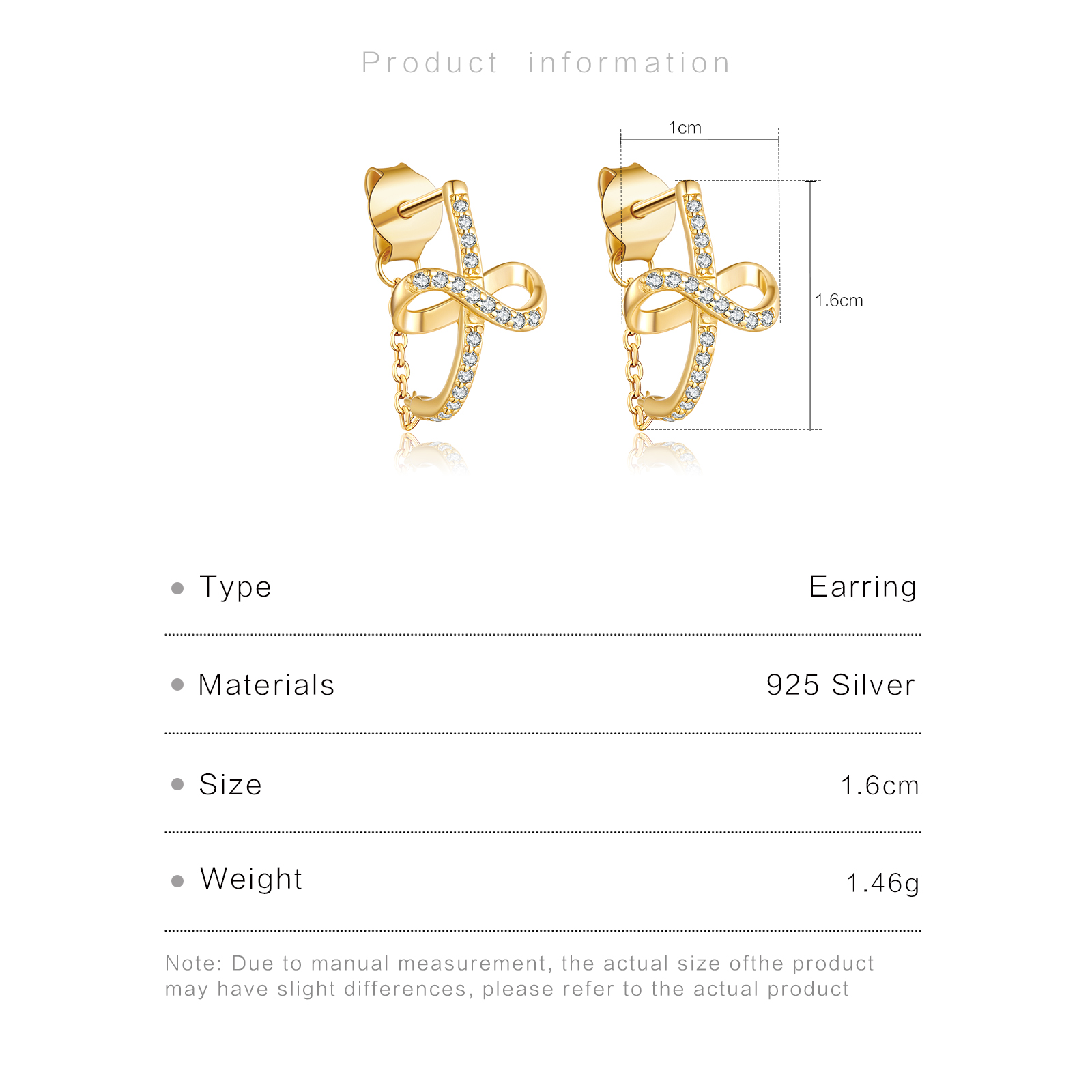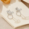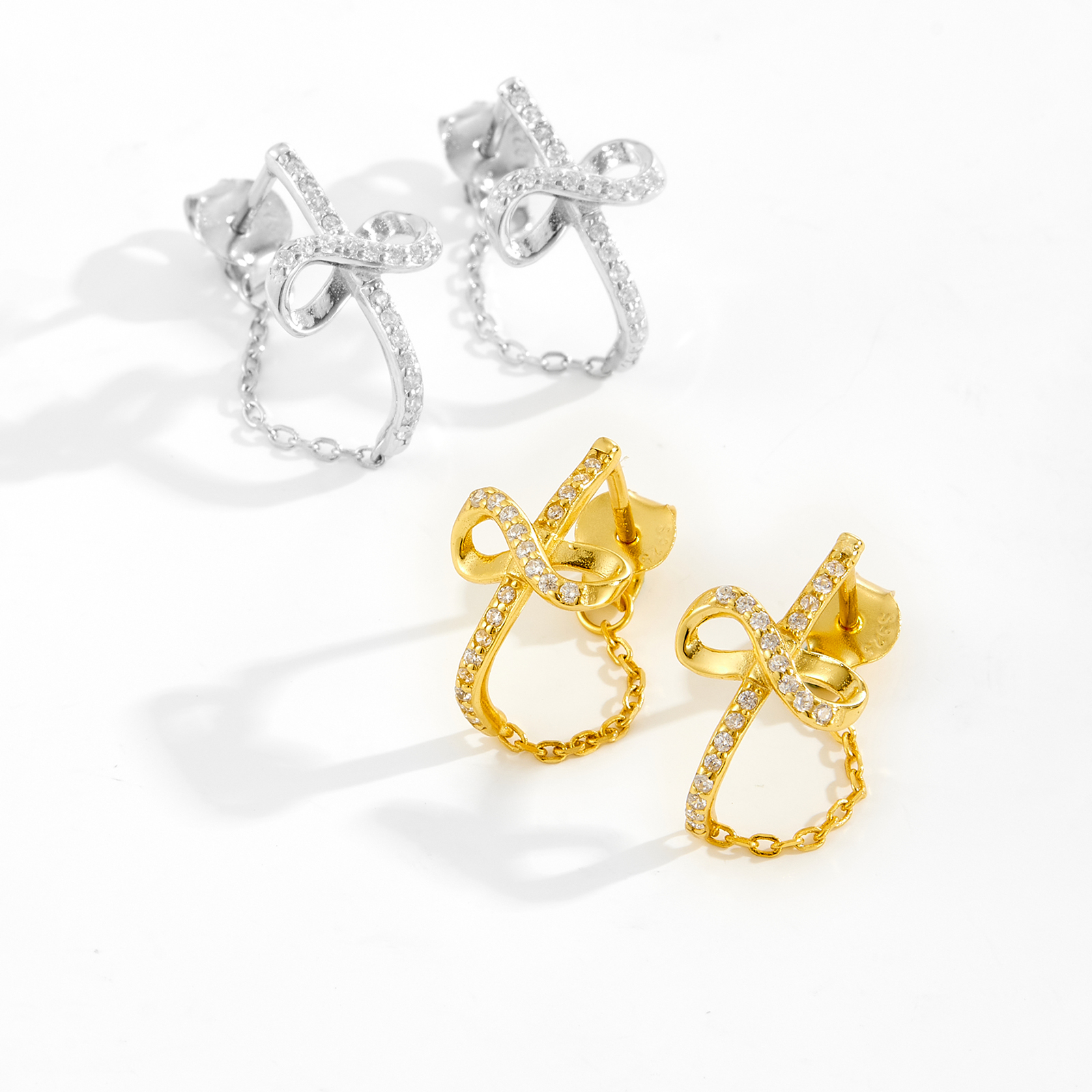 These 925 silver drop earrings boast an exquisite twisted ribbon design, embellished with sparkling zircon stones. The golden hue adds a touch of luxury, while the delicate chain detail enhances the elegant and charming look. Perfect for adding a glamorous touch to any outfit, they are ideal for both daily wear and special occasions.