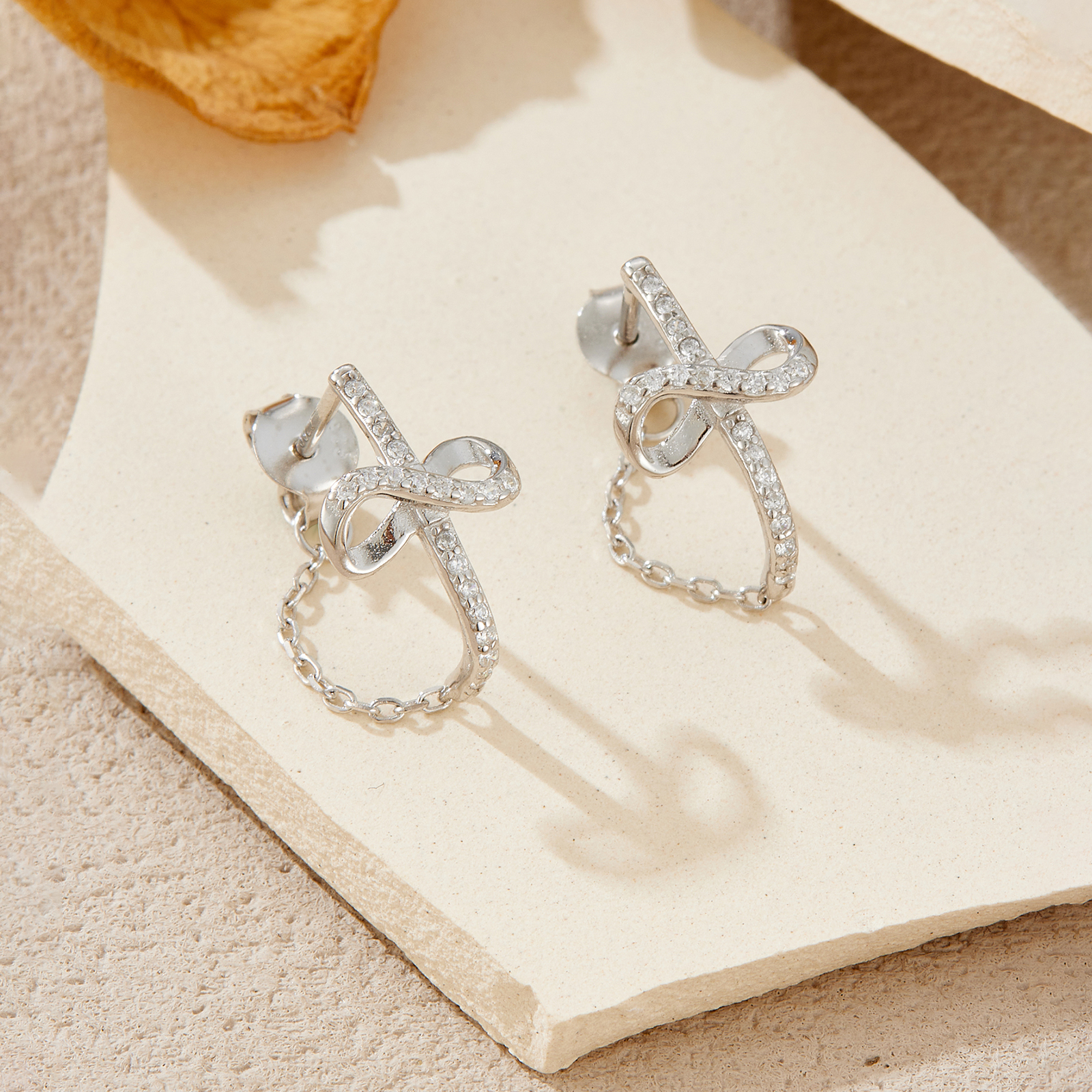 Be the first to review “925 Sterling Silver Infinity Knot Chain Drop Clear CZ Earrings-MME1277”