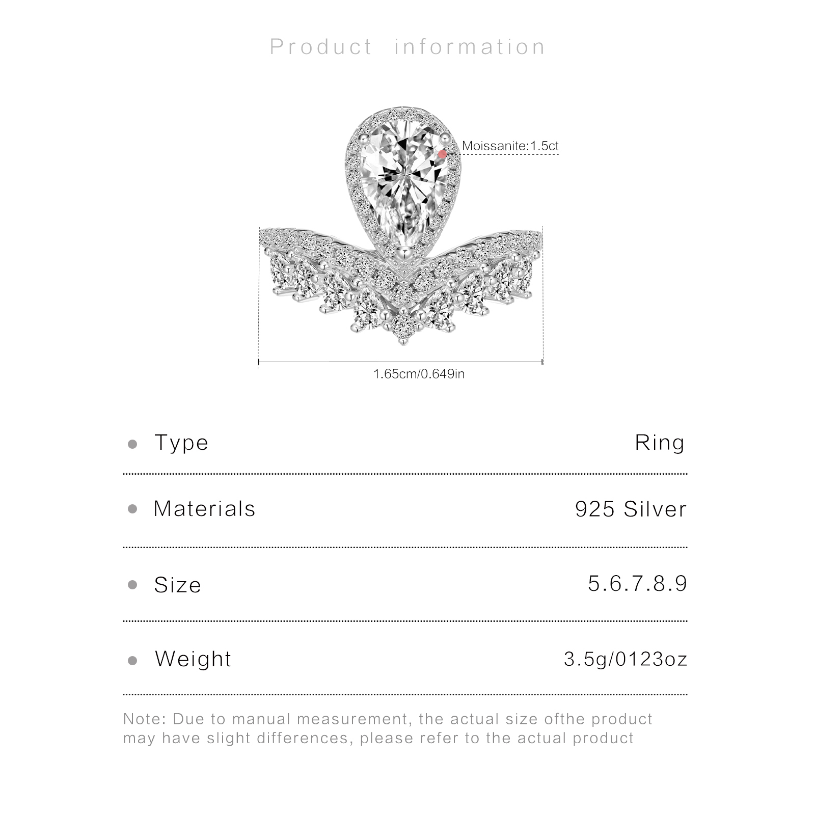 | Material | 925 Sterling Silver + Moissanite |