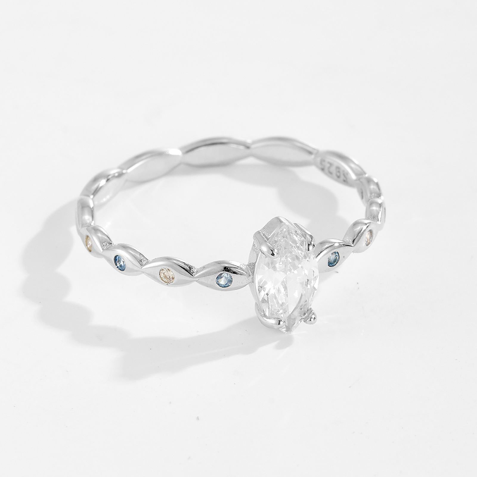 Be the first to review “925 Silver Marquise Main Stone & Blue & White Round CZ Marquise Shank Ring-MMR487”