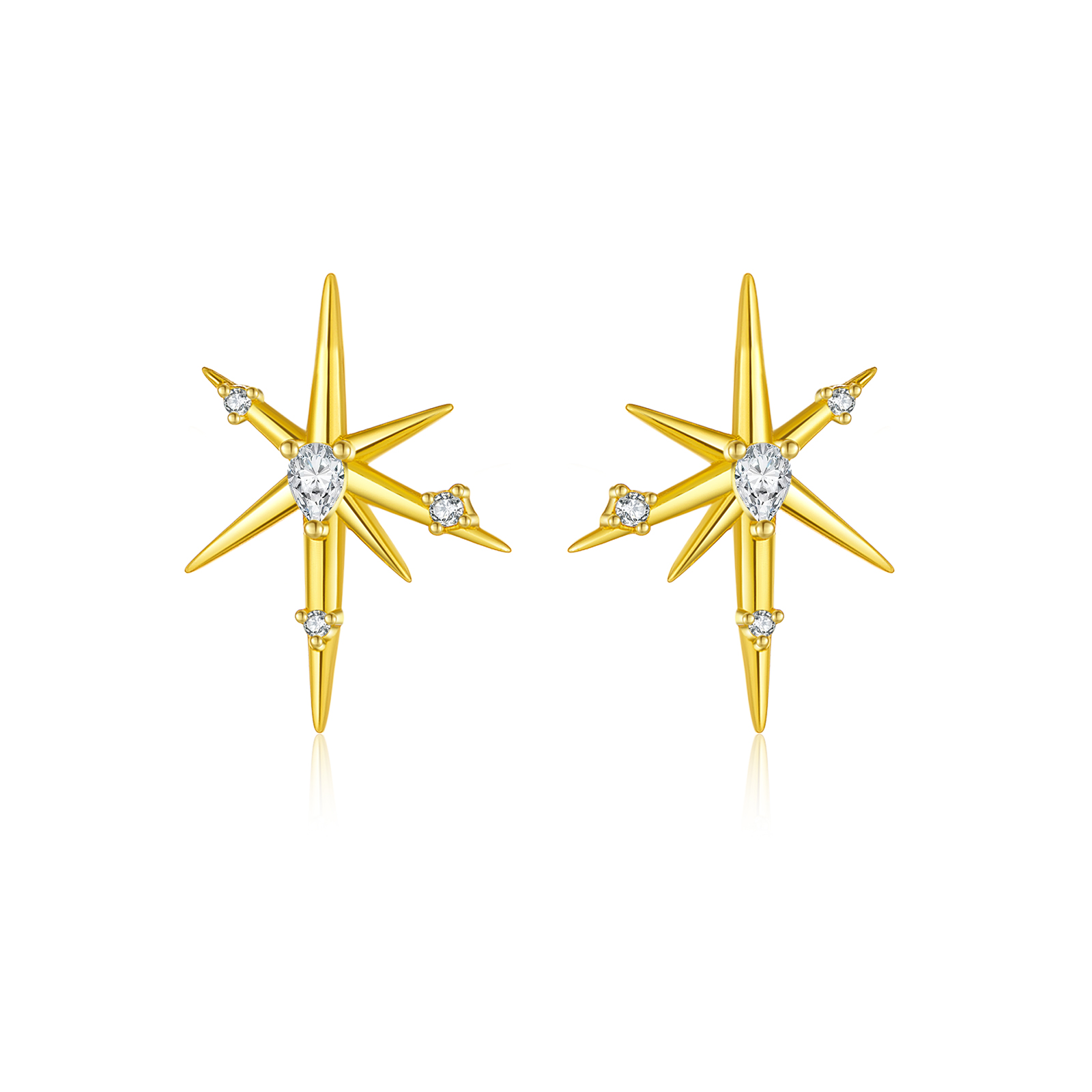 925 Silver Gold-Plated Asymmetric Starburst with Pear & Round Clear CZ Drops Huggies Earrings-MME1251
