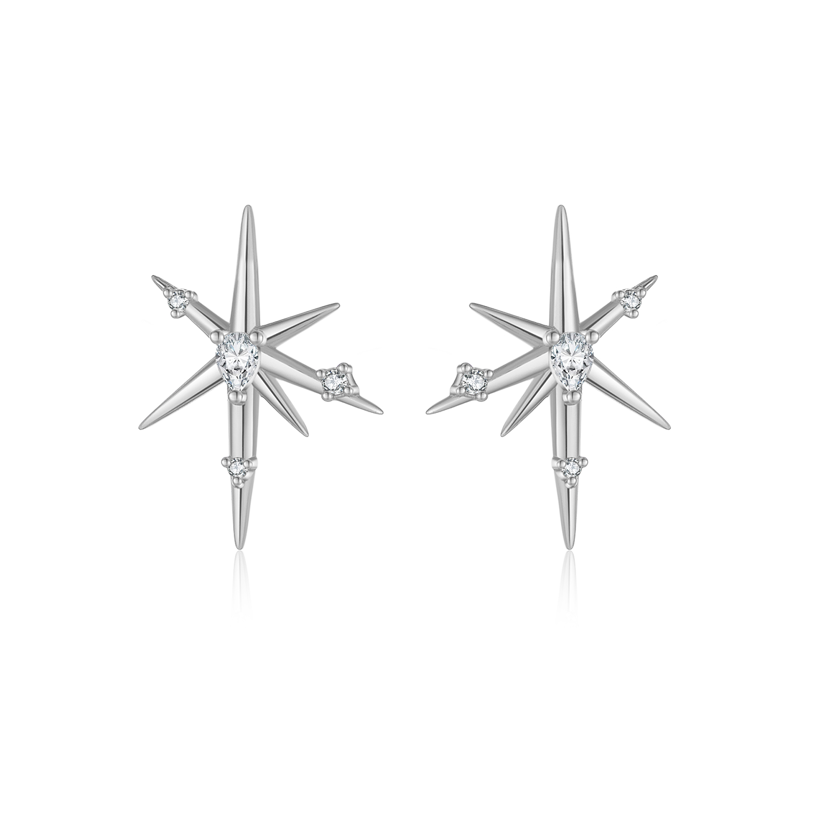 Be the first to review “925 Silver Gold-Plated Asymmetric Starburst with Pear & Round Clear CZ Drops Huggies Earrings-MME1251”