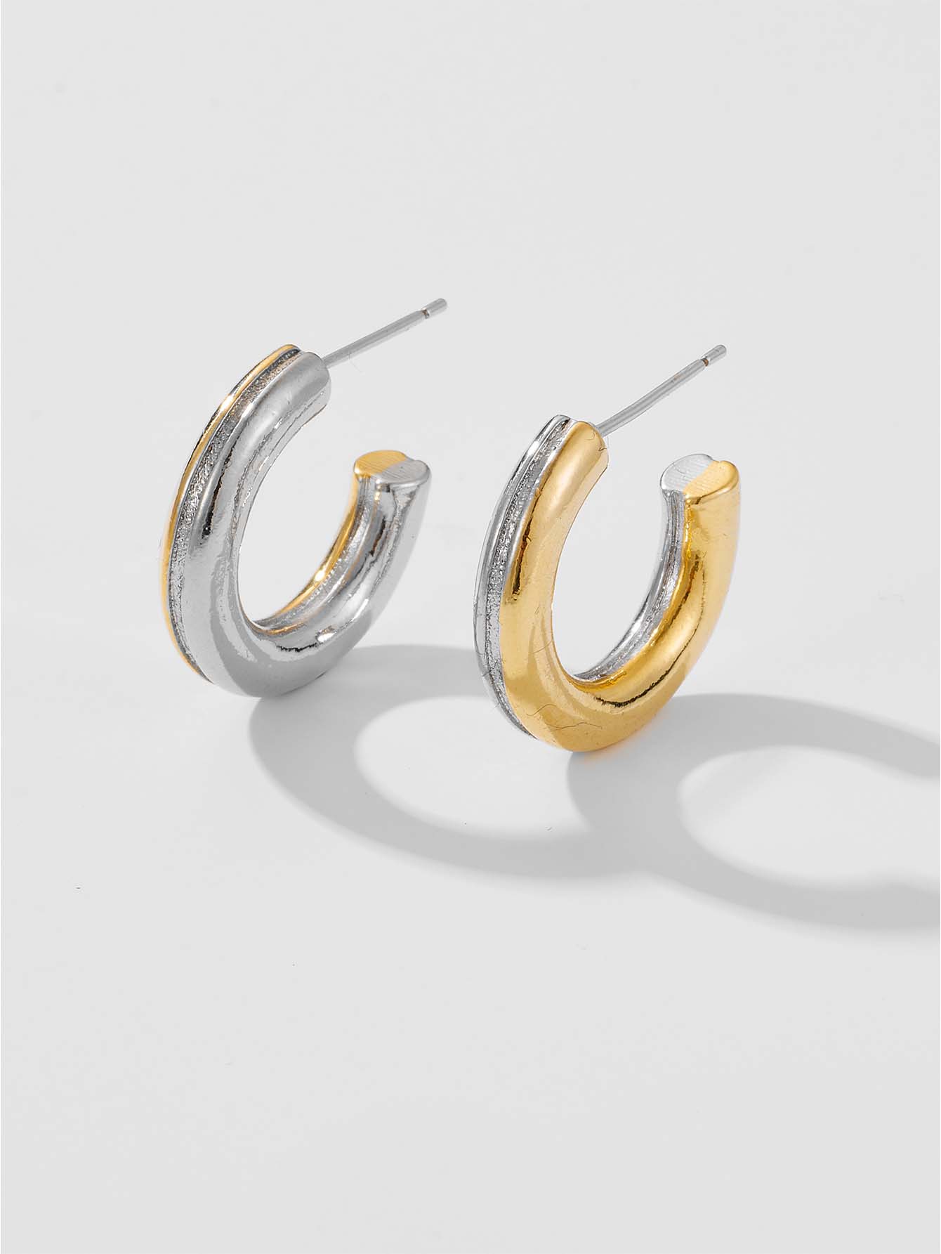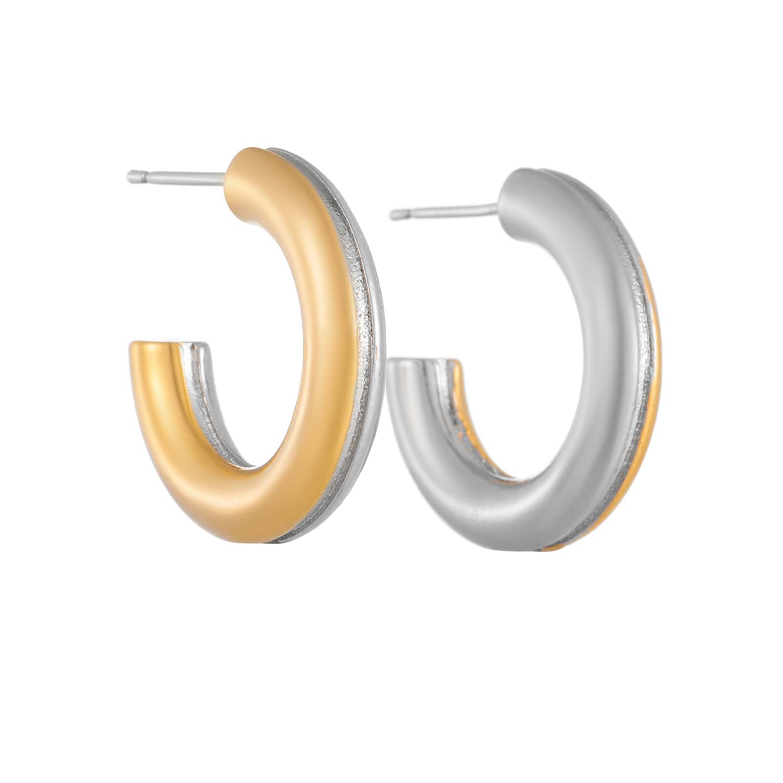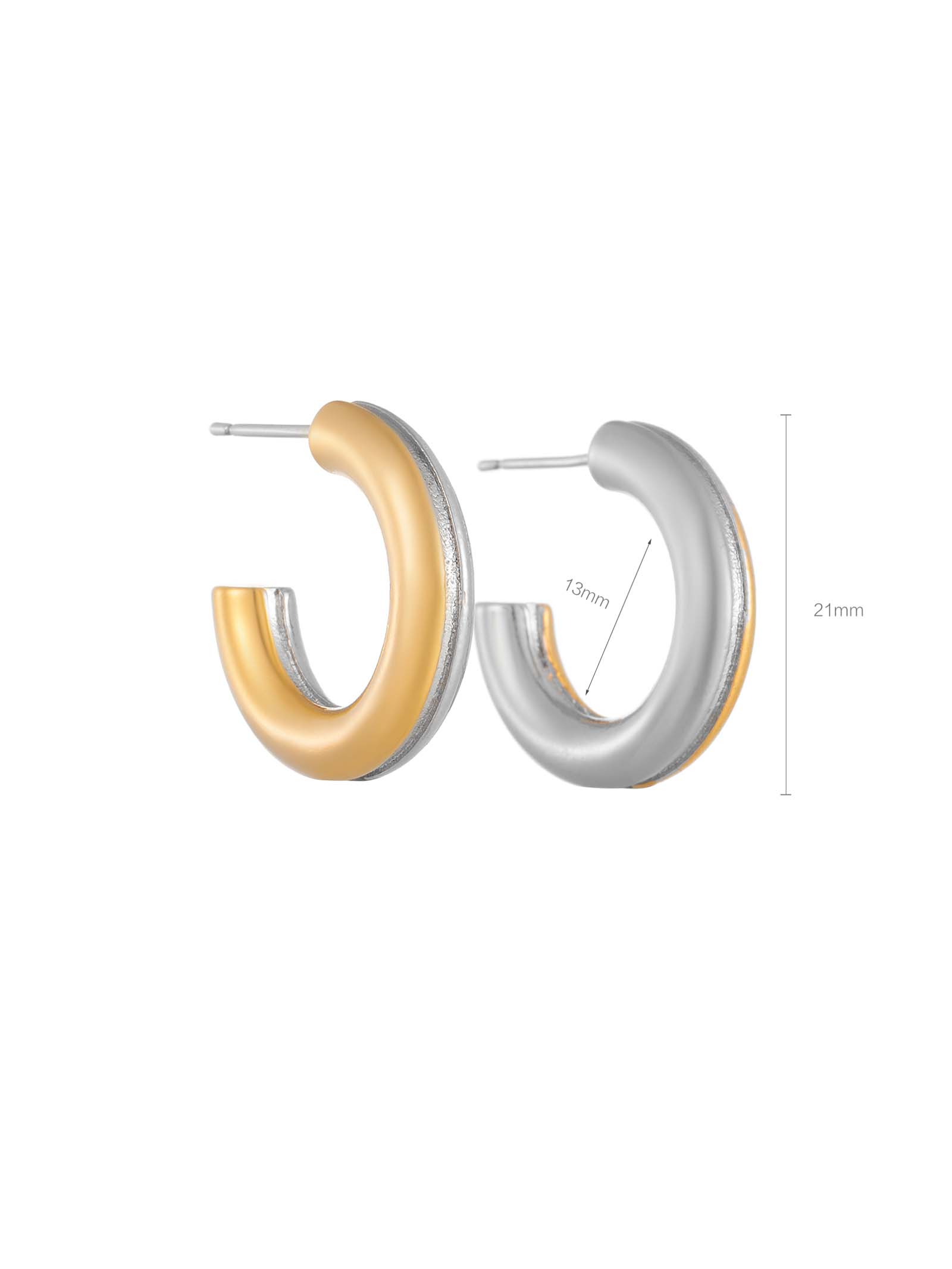 Brass Gold Plated Two-Tone Hoop Earrings, Height 21mm, Inner Diameter 13mm, Mixed Matte & Polished Finish-HTE007