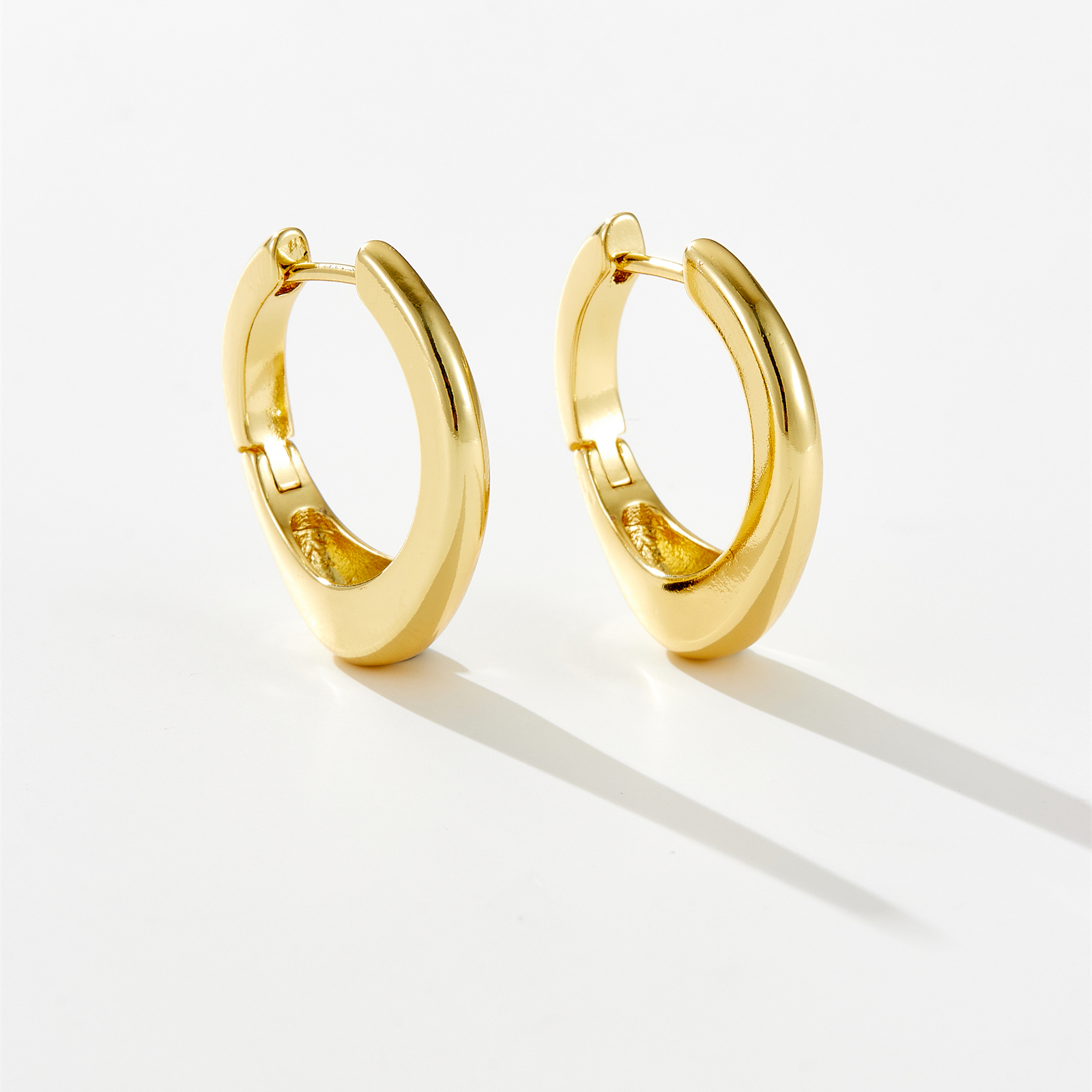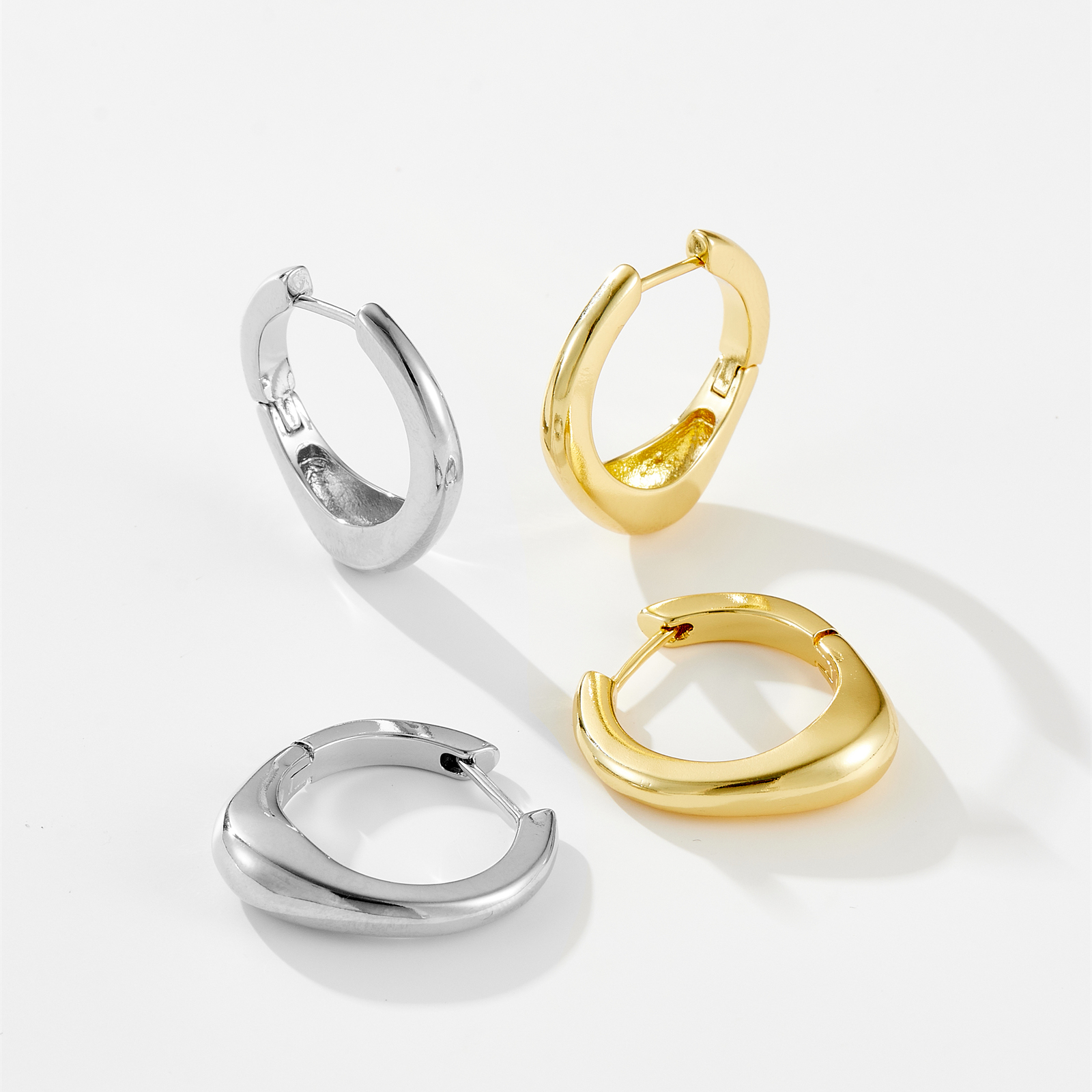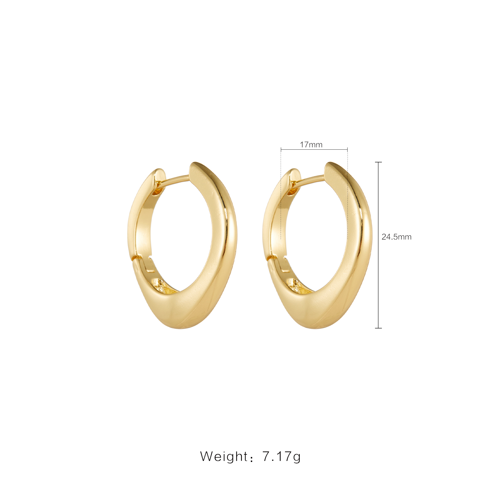 White Copper Gold Plated Asymmetric Hoop Earrings, Size 30*34mm-TTE047