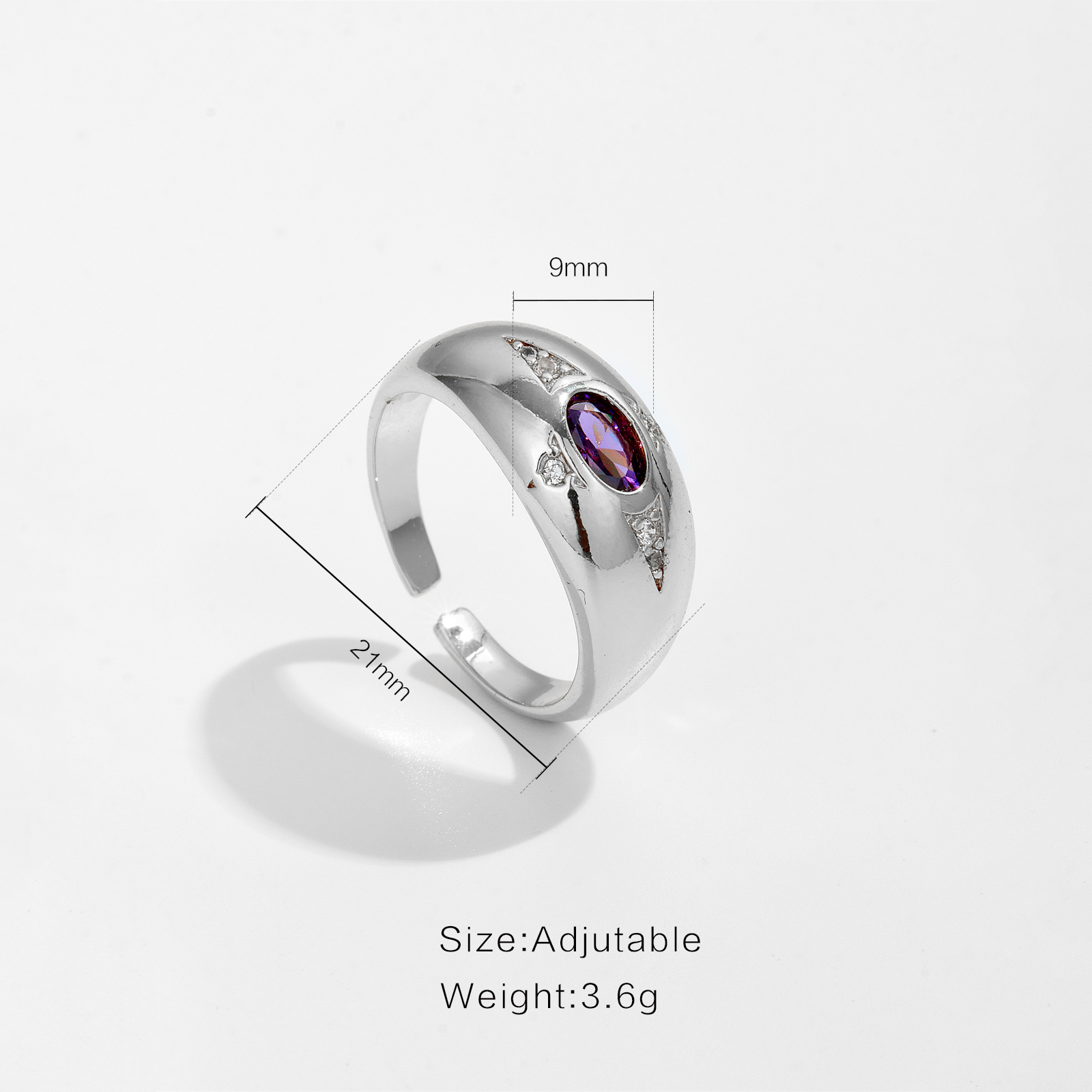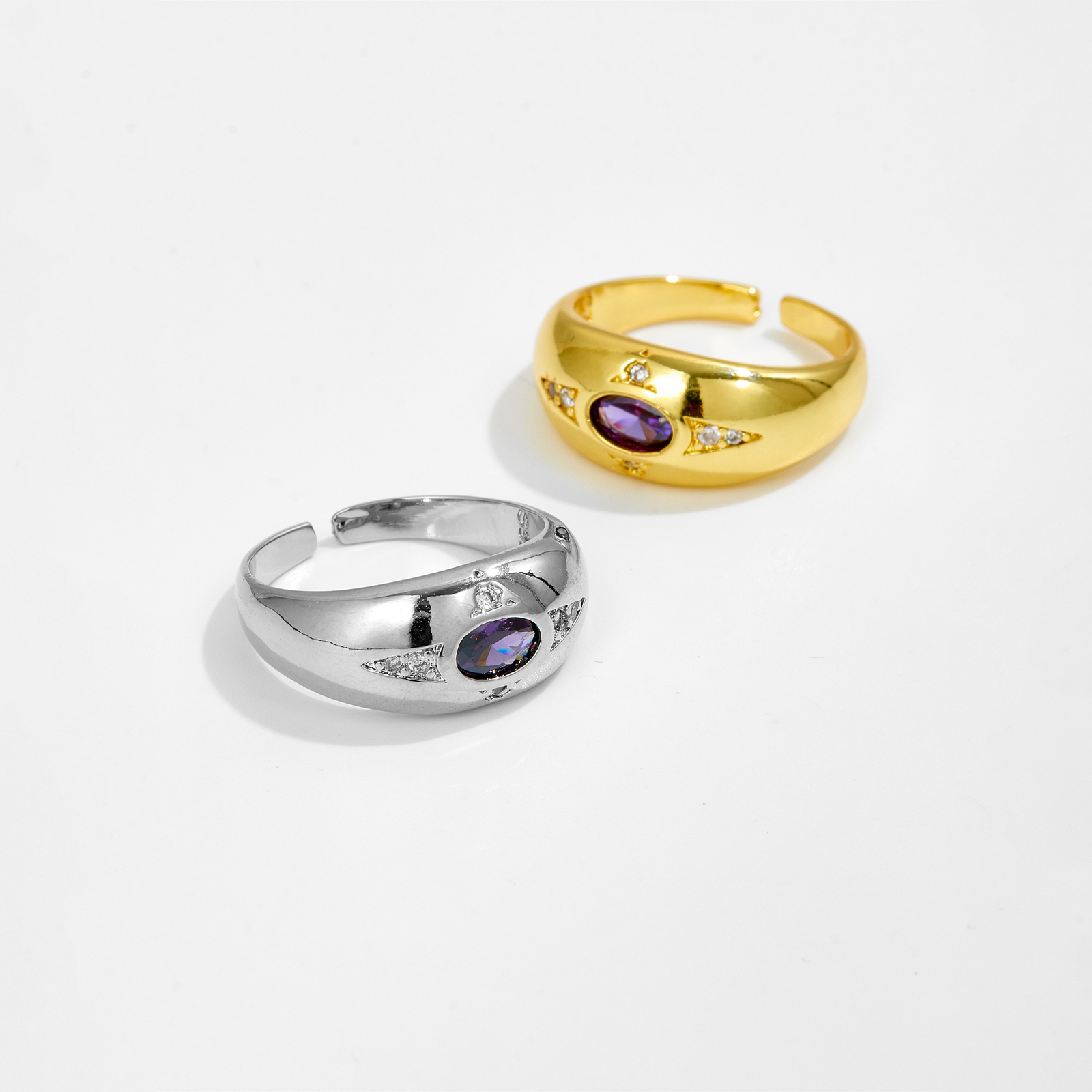 Be the first to review “White Copper Gold Plated Domed Open Ring, 21x9mm Size, Oval Amethyst CZ Accent with Tiny CZ Accents, Smooth Polished Band-TTE116”