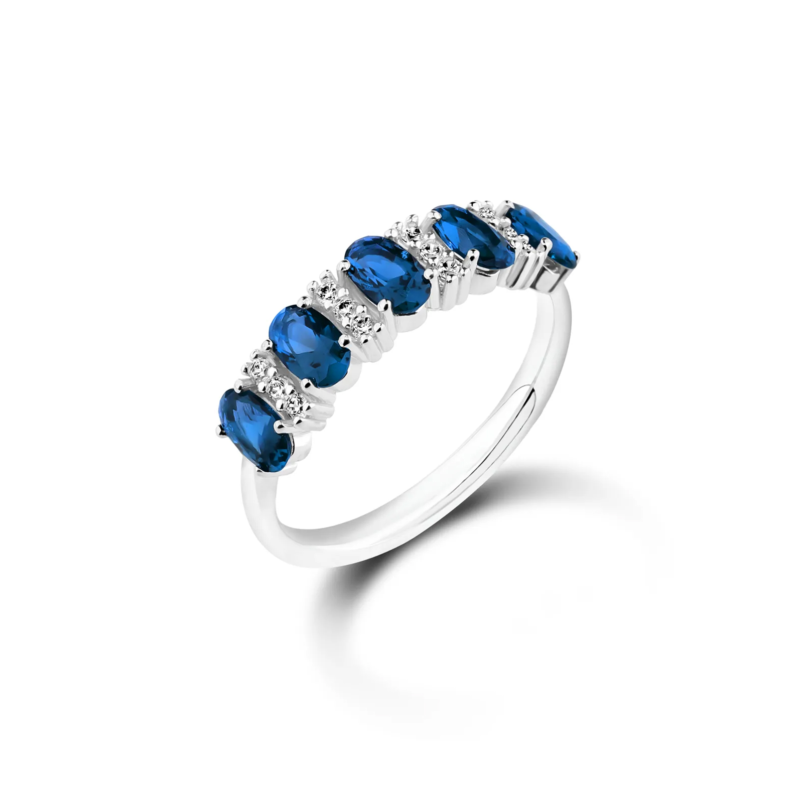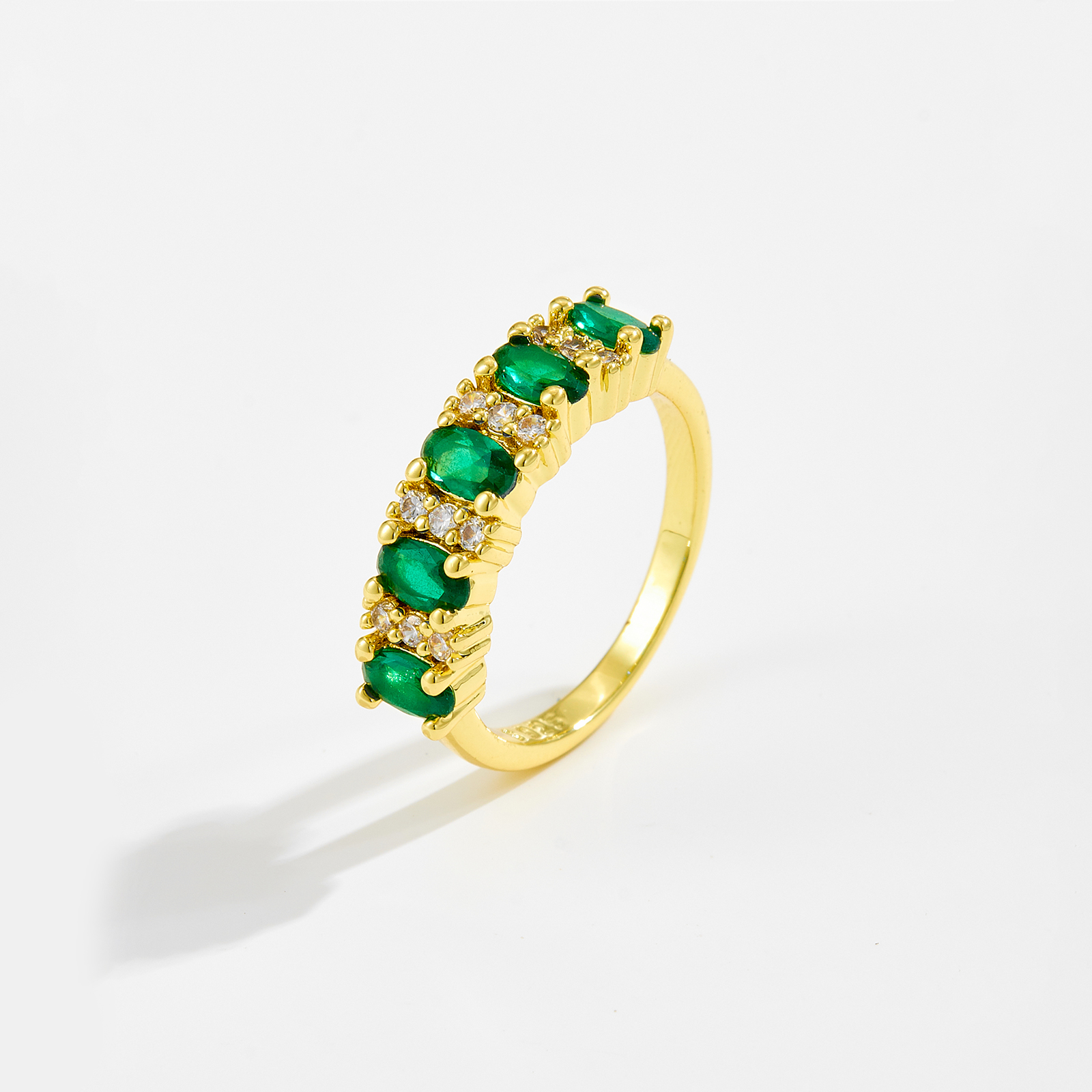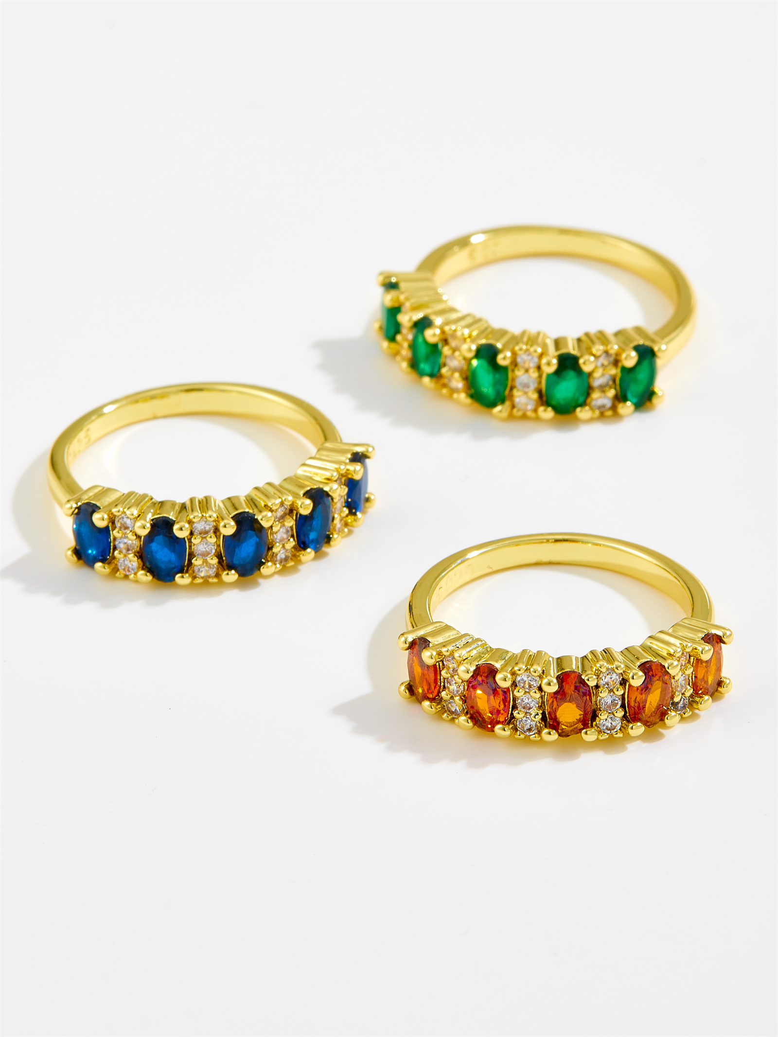 Be the first to review “White Copper Gold Plated Half Eternity Ring, 5.8mm Width, Spaced Oval CZ (Blue/Orange/Green), Smooth Band-TTR140”