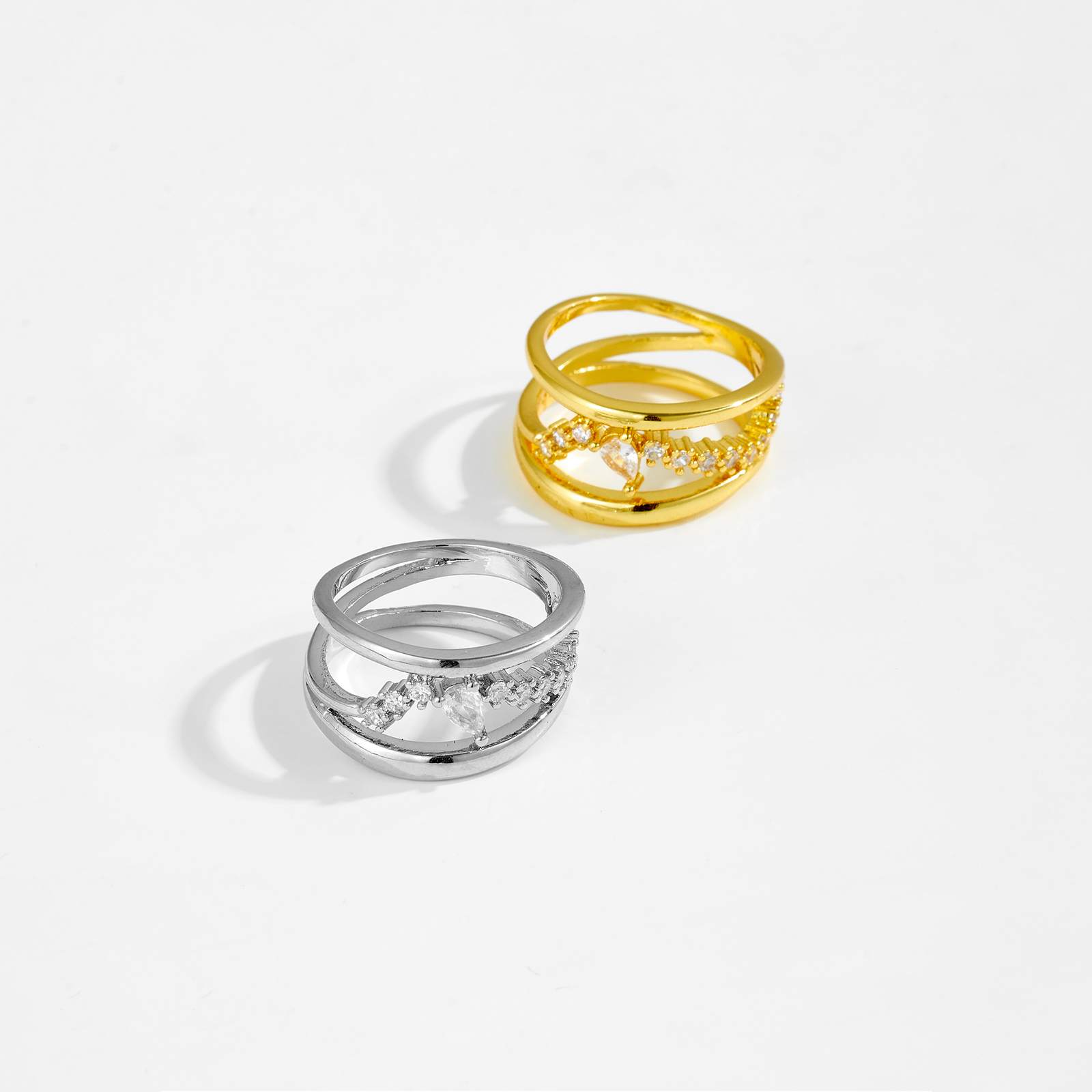 Be the first to review “White Copper Gold Plated Multi-Band Open Ring, 20.5x11mm Size, Pear & Round CZ Accents, Streamlined Band Design-TTR121”