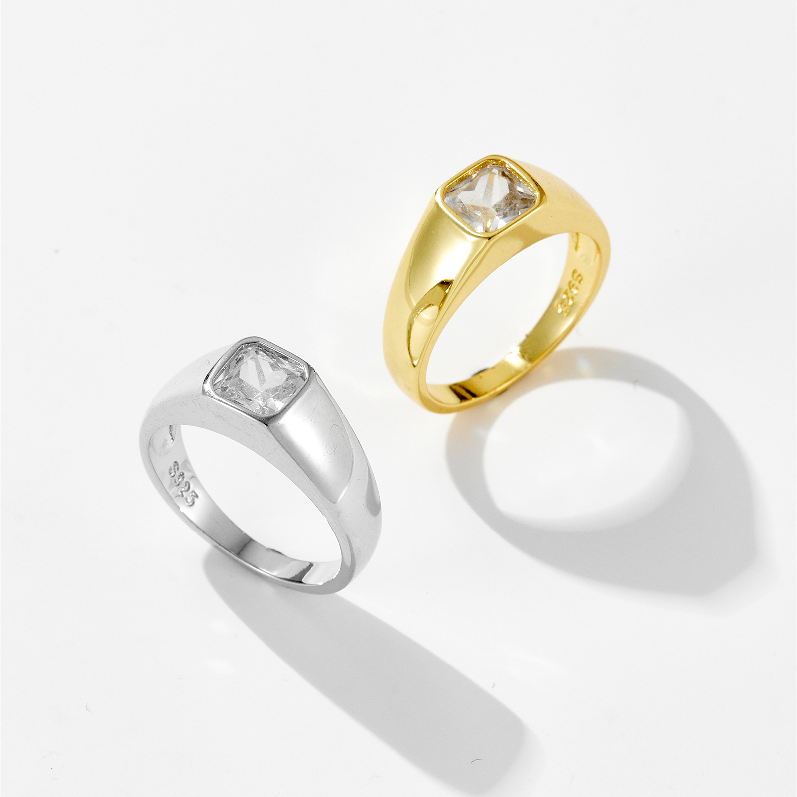 Be the first to review “White Copper Gold Plated Square Stone Solitaire Band Ring, 6x6mm Stone, 9.5mm Band Thickness-TTR075”