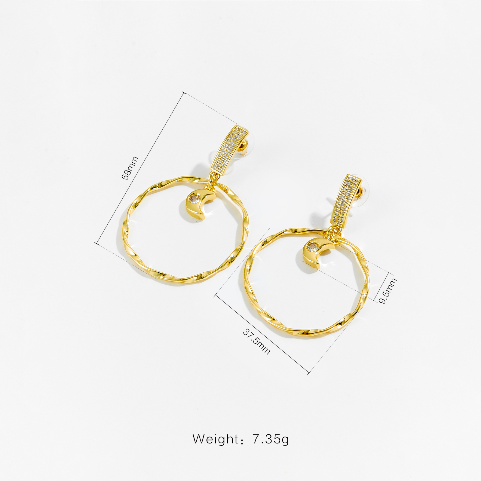 | Size | Moon 9.5mm, Outer Circle 37.5mm,Height 58mm |